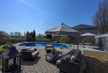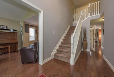 Welcome home to highly desired Uplands North! This impressive 4+1 bedroom, 3.5 bathroom home, is located on a premium 65 ft lot in a family friendly neighbourhood. Only a short walk to the much sought after Jack Chambers Public School and across the street from lovely Virginia Park. Boasting over 3,200 sq ft of finished living space, you will be impressed from the moment you step foot through the front door! Main level with hardwood flooring throughout features a grand two storey entry, living room, formal dining room, updated gourmet eat-in kitchen with quartz countertops, and inviting family room with gas fireplace. The beautifully landscaped backyard Oasis is the perfect spot for summer entertaining featuring an in ground heated salt water pool, oversized patio, shed, and fully fenced yard. Second level with hardwood flooring features 4 bedrooms including stunning master with 5-piece ensuite bathroom and walk in closet. Second level also boasts additional family bathroom. Fully finished lower level offers a family room, additional bedroom, and full bathroom with walk-in shower. Many quality finishes throughout and no feature has been overlooked! Main level laundry, Roof (2017), Aya Kitchen (2013), Pool liner and cover (2018), Central Air (2016), Central vac, gas line for bbq, owned hot water heater, and the list goes on. All kitchen appliances included.